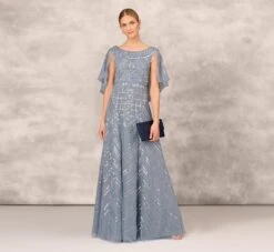 Create a high impact look at your next formal event when you choose this beautiful, beaded evening dress. For that upcoming wedding or gala, this special occasion gown features a blouson bodice, sparkling scalloped beading, and a flowing straight skirt. The back features a zipper closure and keyhole detail. Pair this beautiful sleeveless evening dress with chandelier earrings and a sleek metallic clutch for a jaw-dropping look sure to turn heads all evening.