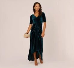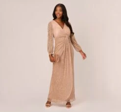 Boasting brilliant floral and scroll beaded details, this mermaid gown is anything but garden variety. This evening gown features a fitted bodice with bead adorned v-neckline, sheer petal-like short sleeves, and a mermaid skirt with godet pleats. Designed with mesh knit fabricand fully lined, this formal dress is covered in stunning multicolor sequins and beading that draws the eye. A no waist-seam design makes this beaded dress a comfortable fit for all body types and a zipper closure at the back is the final touch. Nude heels and a simple clutch willelevate this short sleeve gown with ease.