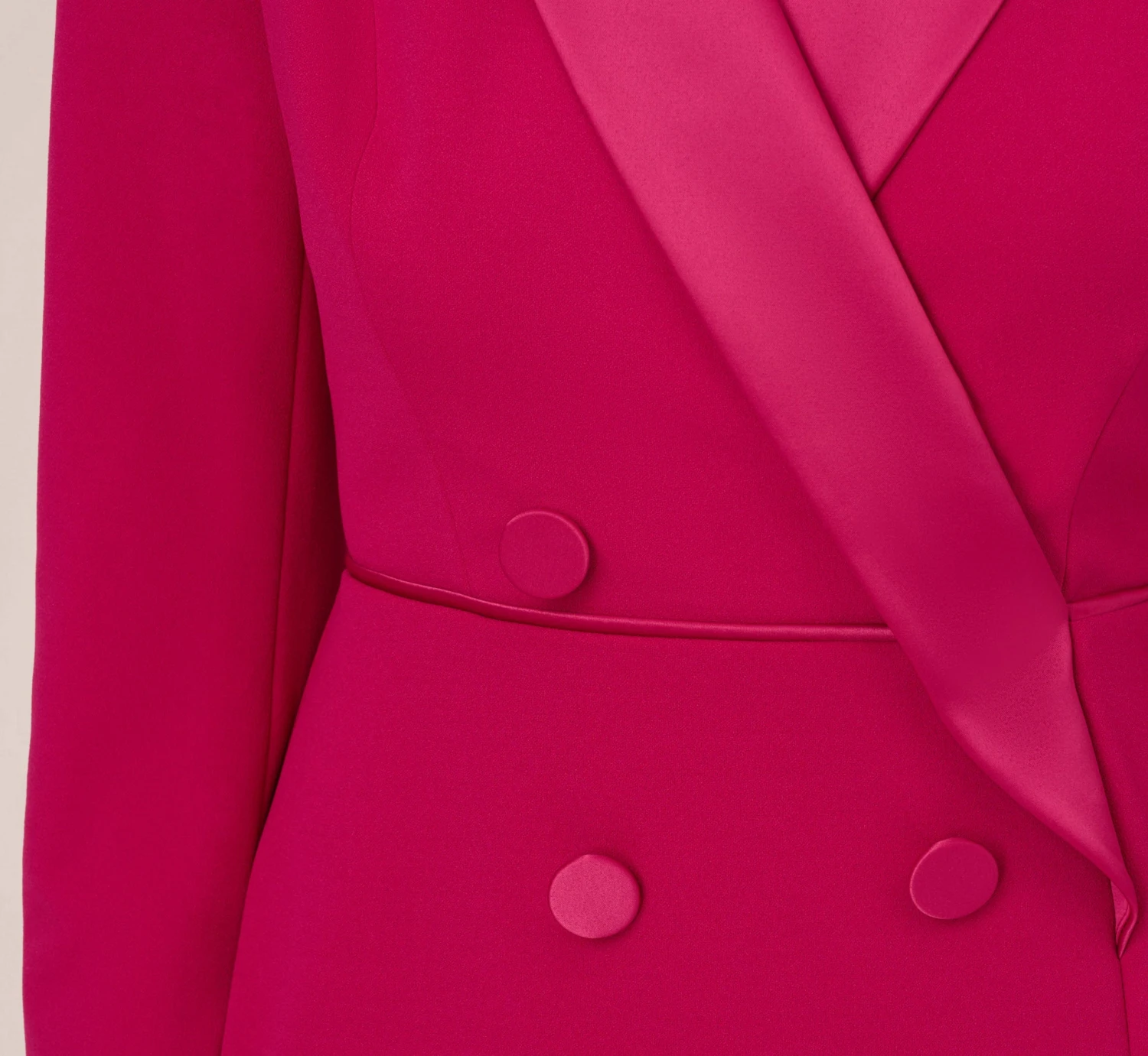 With the arrival of this tuxedo dress, your next iconic look awaits. This cocktail dress features a surplice bodice with notched satin lapels, satin-covered button accents that created a double breasted look, and long sleeves with light shoulder padding. Crafted from crepe knit fabric, this tux dress has some stretch. A zipper closure with hook and eye completes the look at the back of this design. Styled with pumps or a strappy heel, this sheath dress is easy to rock at the office or elevate for semi-formal events with accessories.