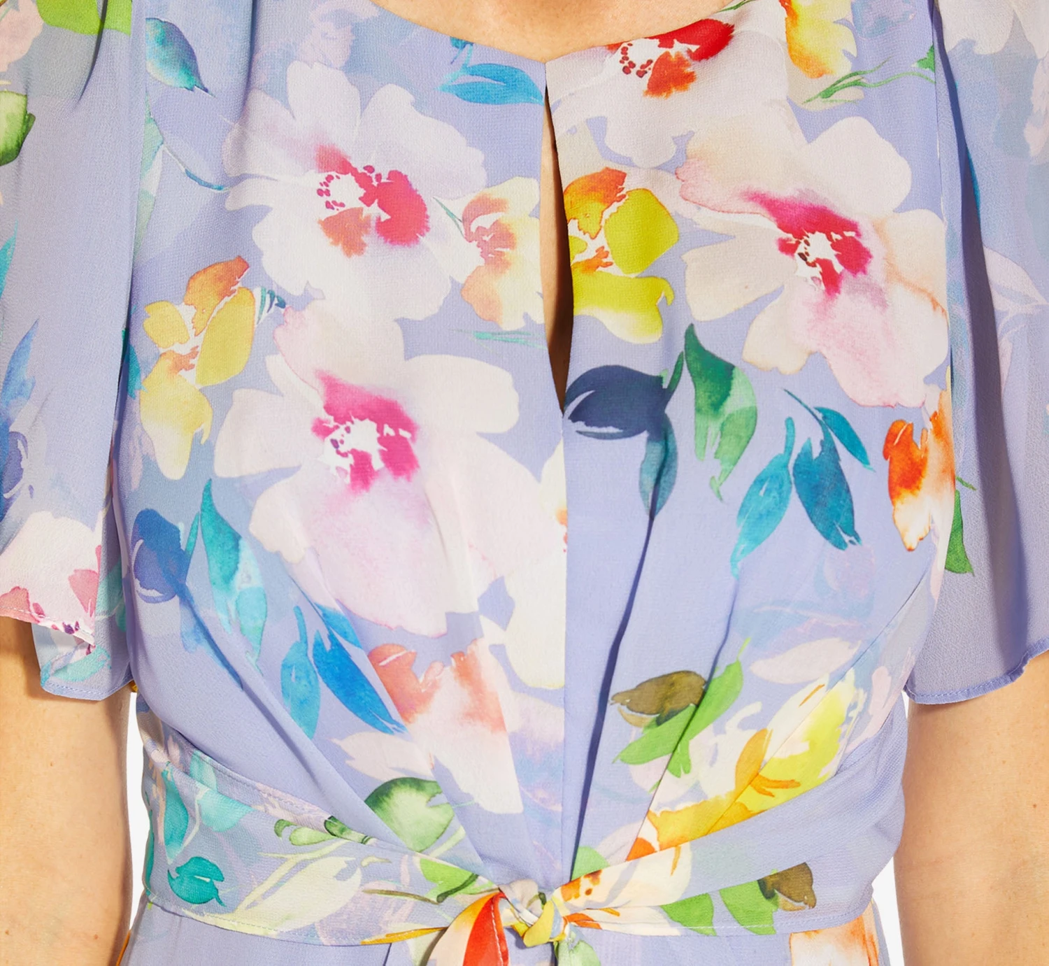 A romantic dress that will leave a special place in your heart. A lightweight and lighthearted woven chiffon dress in a feminine floral print is designed with a gathered ruched waist with self-tie belt (so flattering). Details we love: the clean bateau neckline, short flutter sleeves. Perfect for all your formal occasions and wedding receptions.