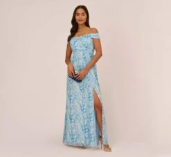 Lightweight and lighthearted, our long gown in a flowy and soft chiffon fabric features an eye-catching floral print. Designed with a wrap bodice with pleated detail that tops a long, shirred skirt with front slit for added drama. Sheer long sleeves with elastic flare cuffs. Finished with a self-tie belt to accentuate your waist.