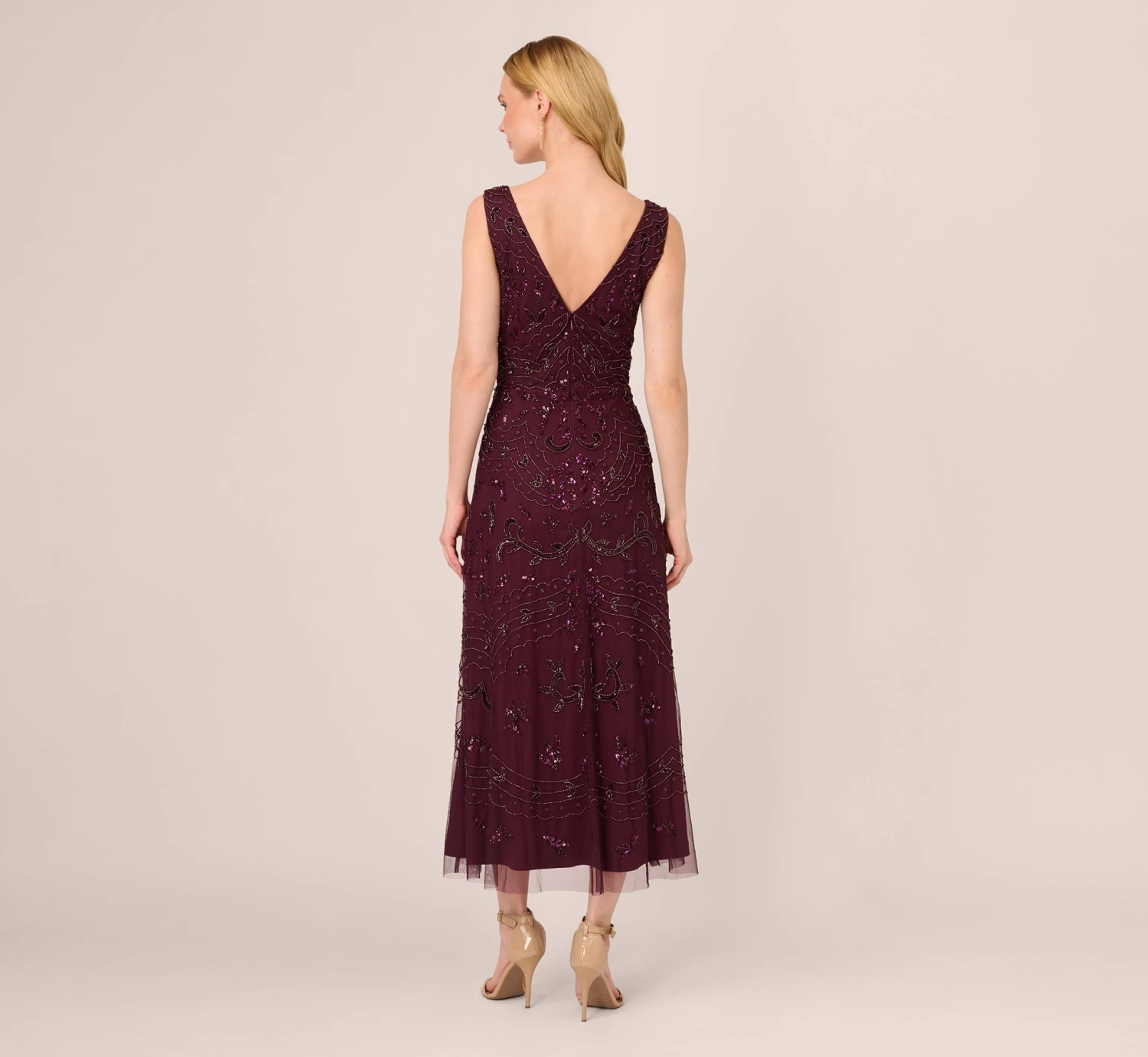Be party ready in an instant in our effortlessly chic dress that gets treated to allover dazzling hand beadwork. Details we love: the clean v-neckline with sheer trim and the soft pleats along the skirt for added movement and sway. Wearable on repeat to all your special occasions.