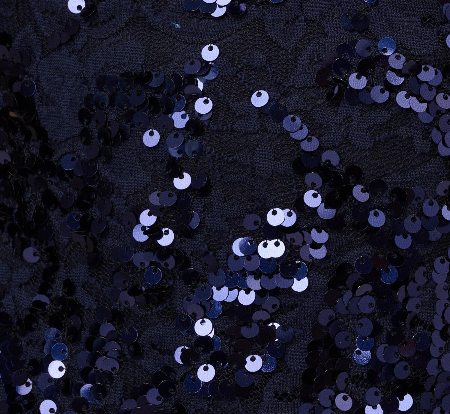 There’s no shortage of beautiful details in this sparkling midi dress. This sheath dress features an extended shoulder sleeve, a mock neckline, and a midi-length skirt. Fully lined and crafted from a novelty lace, this cocktail dress is hand-embellished with sequins and has no waist seam for a comfortable fit. A zipper at the center of the back completes this design. Paired with nude high heels and a satin handbag, this sequin dress is a classy look.
