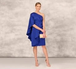 One Shoulder Crepe Cocktail Dress With Slit In Royal Sapphire
