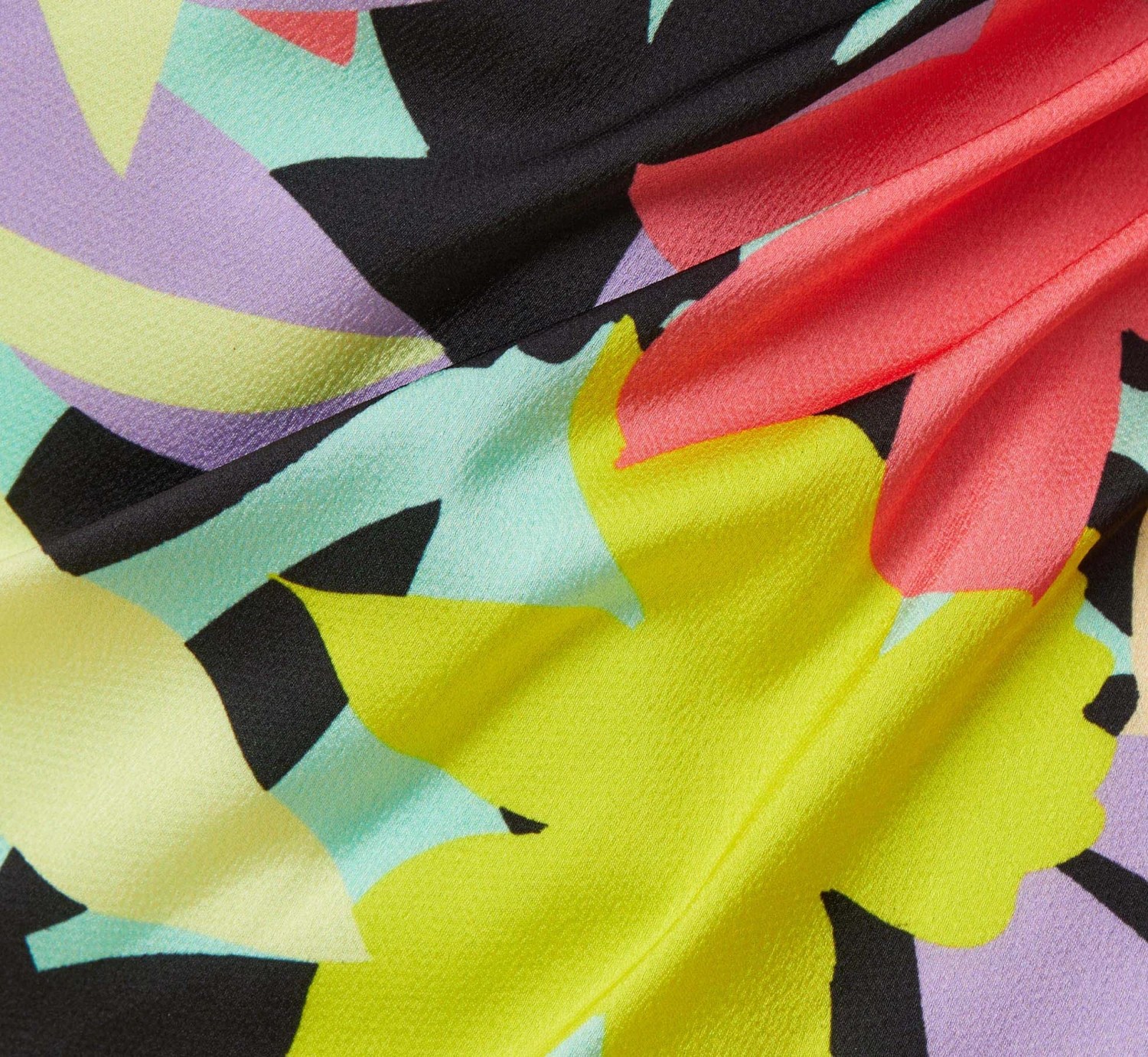 Feel like you’re on a tropical vacation in our buttery soft woven stretch satin midi dress printed in a bold floral. This versatile and lightweight dress features an asymmetrical hem for a flirty finish. Delicate ruching on the surplice neckline and skirt for a flattering fit. Sleek back zipper with hook and eye closure. Wearable on repeat and easily packs for your upcoming vacation.