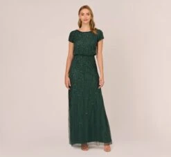 Adrianna Papell Hand-Beaded Ankle-Length Dress In Night Plum
