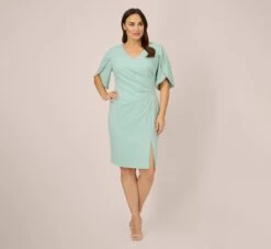 Adrianna Papell Plus Size Beaded Blouson Mermaid Gown With Sheer Dolman Sleeves In Dusty Emerald