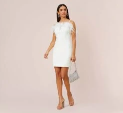 Plus Size Puff Short Sleeve Sheath Dress With Ruffle Accent In Ivory