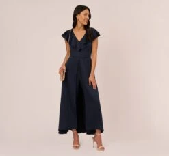 Adrianna Papell Satin Crepe One-Shoulder Long Gown In Willow
