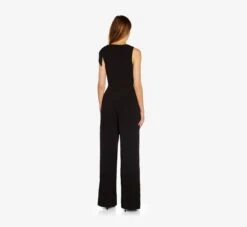 Sleeveless Crepe Mini Dress With Rhinestone Bow Accent In Black