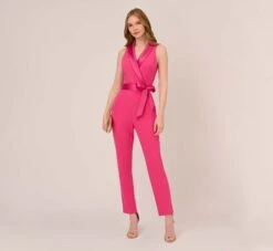 Adrianna Papell Sleeveless Crepe Jumpsuit With Tuxedo Collar In Cabaret Pink