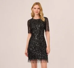 Adrianna Papell Beaded Midi Dress With Tulle Skirt In Midnight Multi