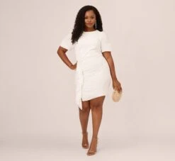 Plus Size Puff Short Sleeve Sheath Dress With Ruffle Accent In Ivory