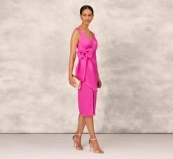 Sleeveless Crepe Mini Dress With Rhinestone Bow Accent In Black