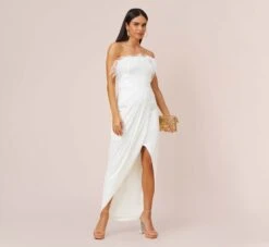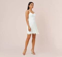 Stretch Crepe Fringe-Trim Short Sheath Cocktail Dress In Ivory