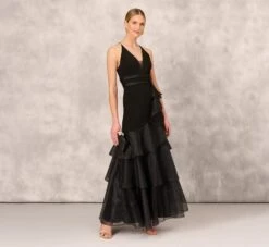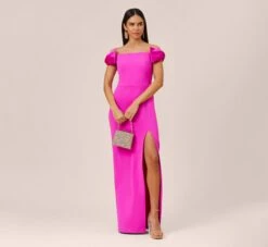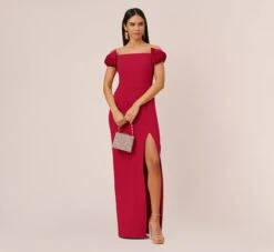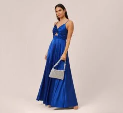 Stretch Crepe Strapless Midi-Length Sheath Cocktail Dress With Ruffle In Royal Sapphire
